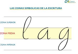 A nivel escritural, es la zona más compleja de la escritura, porque tanto las letras que suben l,t,d,b,f como las que bajan j,y,g,p,f inician y terminan su forma natural uniéndose a las vocales para formar palabras en esa zona media, mas el resto de letras que solo se forman en esta zona media . m,s,r y las vocales… Por ello, cuando hablamos de letra disgráfica o letra que no se puede leer, estamos diciendo que esta zona es la causante de que la escritura no sea clara ni legible.